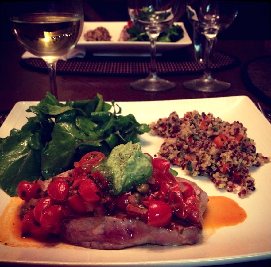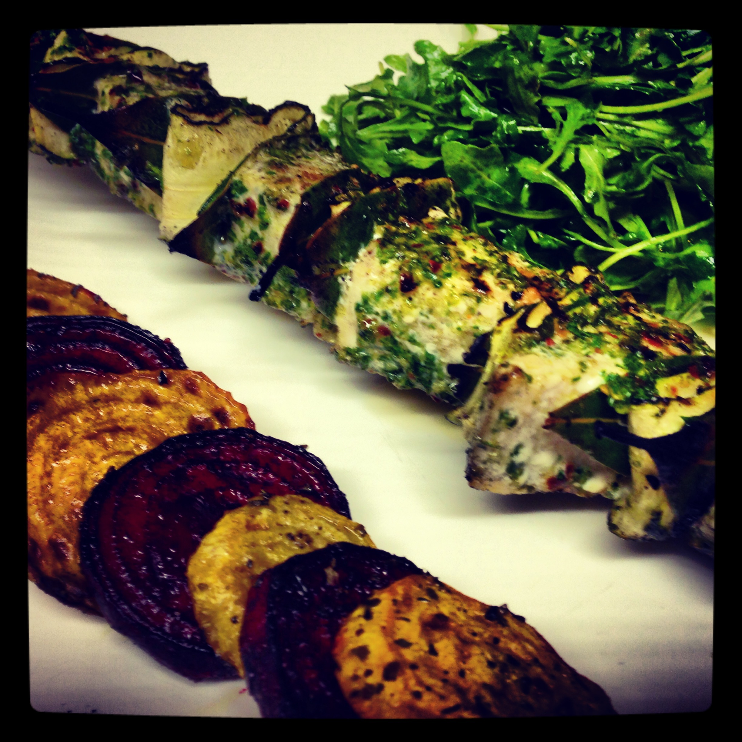 With Joiwind at work during the day, and Andy at home to play…just kidding…he did actually squeeze this master creation into an already busy day, Joiwind came home to an out of this world meal. And yes, it included beets! And also a fancy swordfish skewer with a parsley salsa verde (just sayin).