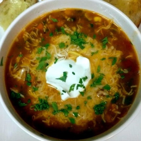 Sometimes it is pureed, sometimes the ingredients are left whole. Our favorite is one that has been tweaked over time and leaves the ingredients whole. We like it spicy, but the amount of peppers can be reduced to accommodate a milder crowd.