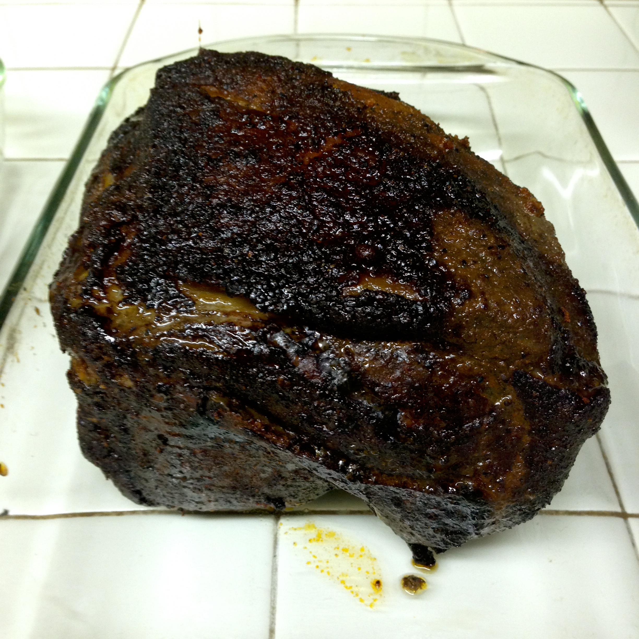 The night before, Andy made his own dry rub from a recipe he found online (see below) and rubbed both the pork shoulder and chicken with it. Then the pork shoulder and chicken were wrapped individually in cling wrap and refrigerated overnight.